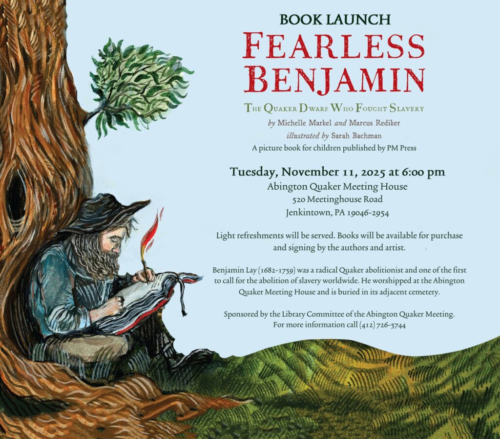 LET’S MEET AT THE BOOK LAUNCH at Abington Meetinghouse at 6pm on Tuesday, November 11, 2025! Write to Radnor Meeting (type radnor.meeting @ radnorquakers . net without the spaces) if you need to know more, or just want to let us know you’re coming. Maybe you can give someone a lift. Families are welcome.